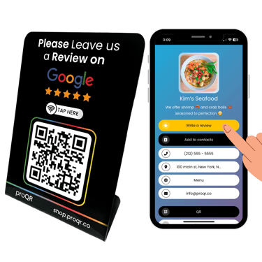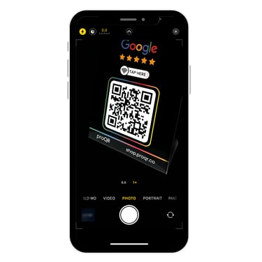 Users can easily scan the proQR smart Google review stand with their smartphone to quickly access your app profile or be directed to leave a Google review