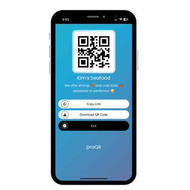 Share your proQR profile using a built-in QR code. Additionally, you can copy or download your QR code.