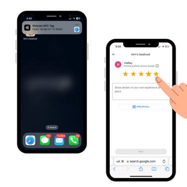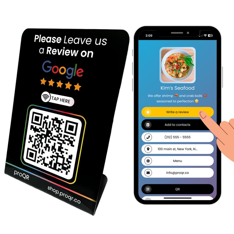 Users can effortlessly tap the proQR smart Google review stand with their smartphone to instantly access your app profile or be directly guided to leave a Google review.